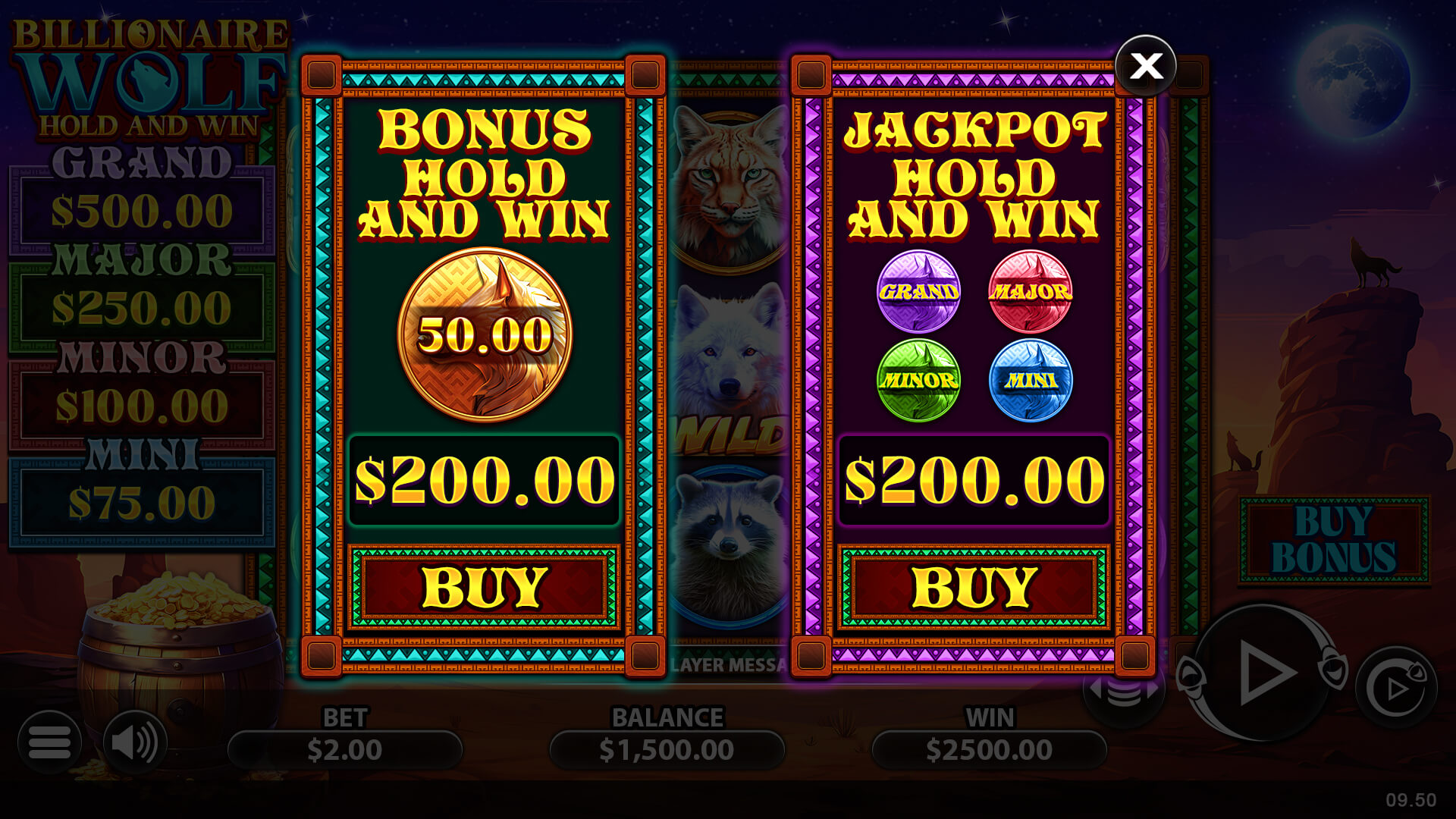 Billionaire Wolf offers several exciting bonus features that enhance the gameplay and increase the chances of winning big. These include the Bonus Hold and Win feature, the Jackpot Hold and Win feature, and the Buy Bonus feature.